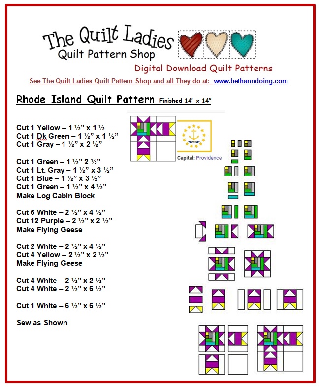 Rhode Island State Quilt Pattern Block by The Quilt Ladies